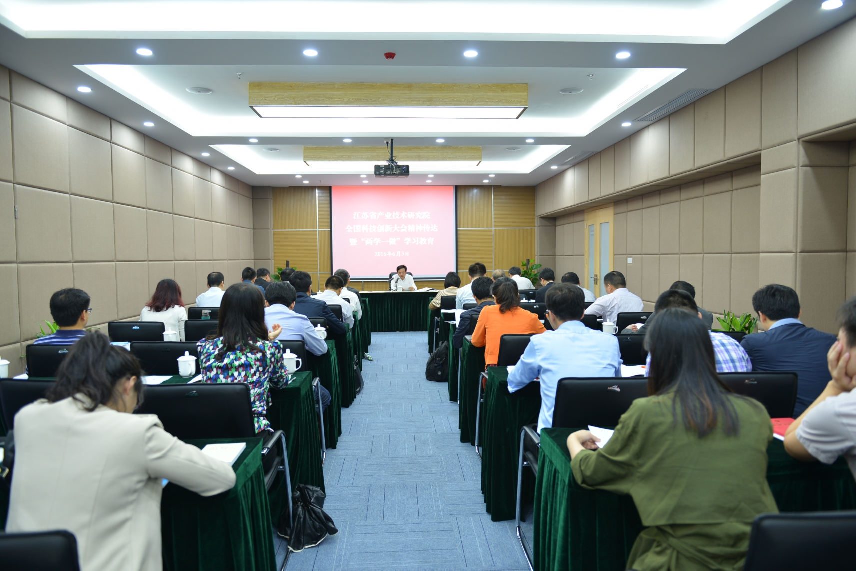 6月6日,我所参加江苏省产业技术研究院组织召开的全国科技创新大会精神传达暨“两学一做”学习教育会议。省总院党委副书记、副院长胡义东同志传达了全国科技创新大会精神,并结合省产研院实际对各专业研究所开展“两学一做”学习教育进行指导。省产研院总院全体员工、各专业研究所分管党建工作的领导参加会议。