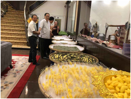 2018年11月16日至22日,应老挝有关方面邀请南通纺织丝绸产业技术研究院“高效集约化现代养蚕关键技术转移转化示范项目”暨“中老绿色丝绸中心蚕桑示范园”项目组参加了老挝一年一度的塔銮节盛会。塔銮节是老挝万象市规模最大、场面最隆重的传统宗教节日。项目积极响应国家“一带一路”战略倡议,发展新“丝绸之路”。通过以饲料代替新鲜桑叶养蚕,节约人力成本,提高桑蚕养殖的生产效率,在国内外率先实现养蚕现代化的转化示范,也为国内蚕桑丝绸生产拓展建立海外桥头堡。《中老绿色丝绸中心蚕桑示范园》位于老挝国首都万象市塞塔尼县萨帕卡农村(Saphakhanong village, Xaythanydistrict, Vientiane municipality),占地约10公顷,由米兰手机在线登录、老挝女双手公司、苏州大学和老挝国家科技部等单位合作共建,并得到老挝苏州大学等单位的大力支持。 中方融合了传统技艺与现代科技的“江苏现代蚕桑生产过程”展厅,吸引了众多市民参观。