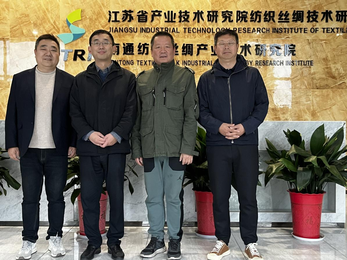 2024年3月27日,江南大学柯桥轻纺产业技术中心蒋少军副主任一行来到研究院探讨新型纤维材料的合作开发,执行院长居海滨、技术部相关人员参加了会议交流。